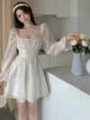 The standout pink bow embellishments add a playful, feminine vibe, making this dress perfect for fashion-forward women who love unique details. The soft Polyester fabric drapes smoothly, giving the dress a flowy yet structured look that’s ideal for parties, date nights, and special occasions.