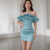Premium Satin Off-Shoulder Ruffle Bodycon Mini Dress – Sky Blue