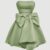 Sage green strapless satin fit & flare dress featuring a fitted bodice and elegant bow back detail, perfect for parties and special occasions.