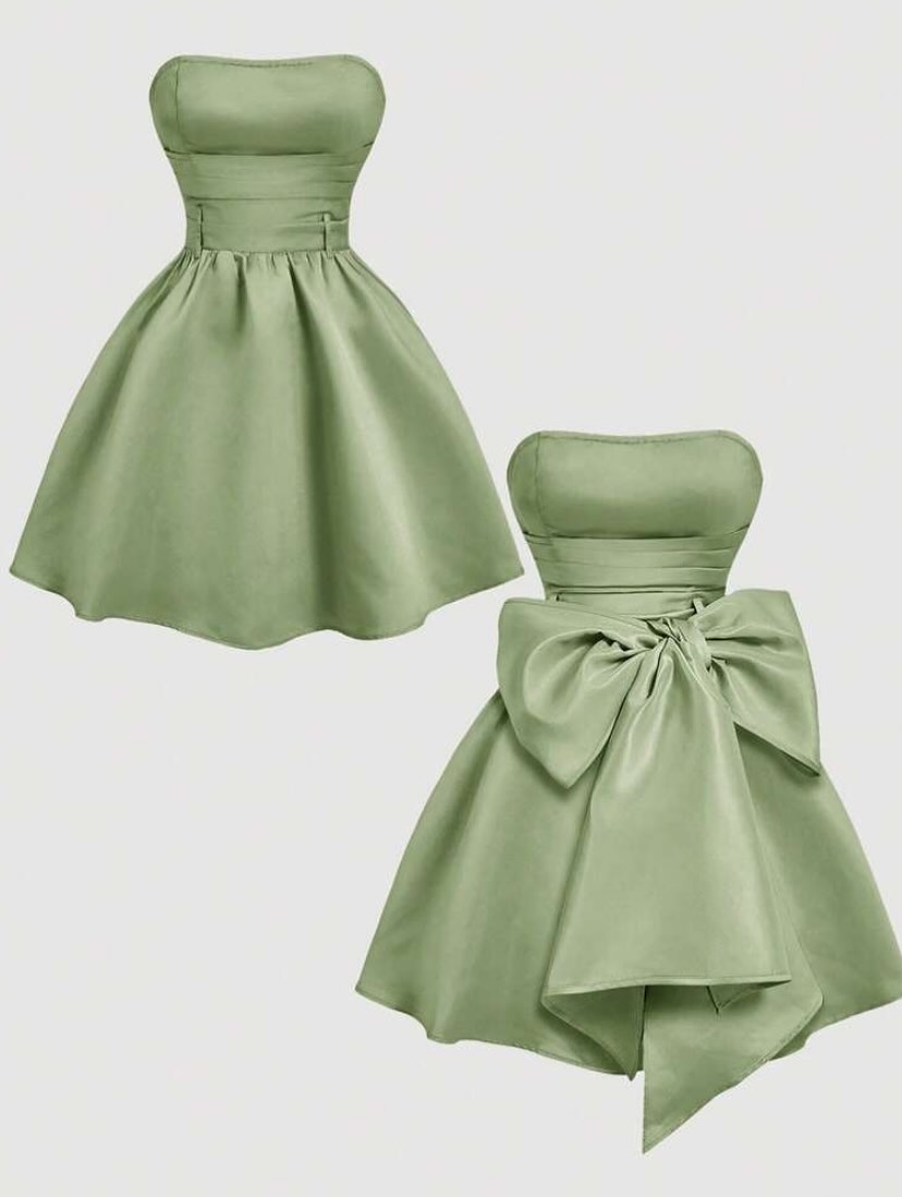 Sage Green Satin Strapless Fit & Flare Dress for Women | Bow Back Party Dress
